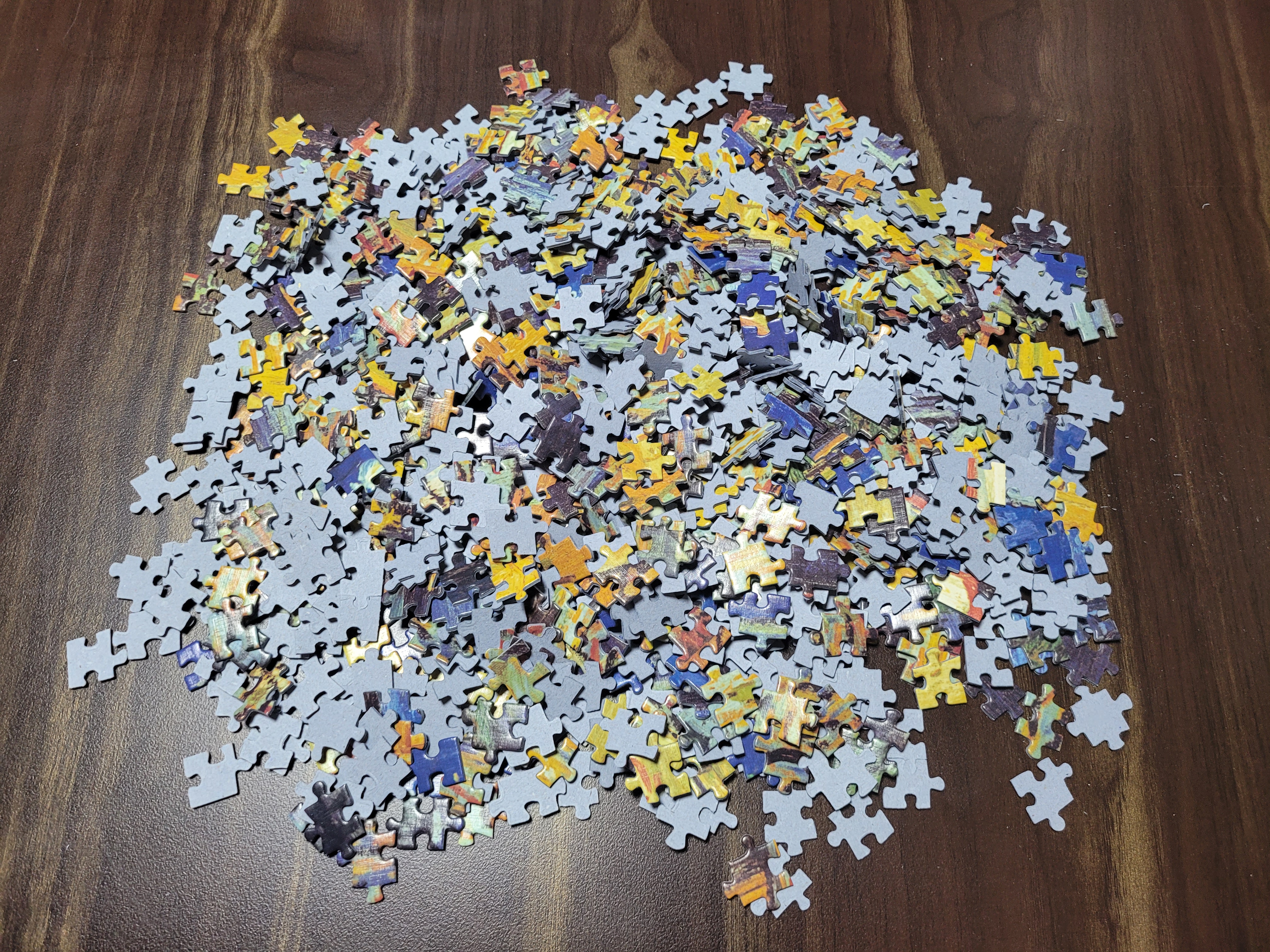 2. 모든 퍼즐을 펼쳐서 앞면으로 뒤집는다. 이 과정에서 테두리 퍼즐을 따로 모아둔다.